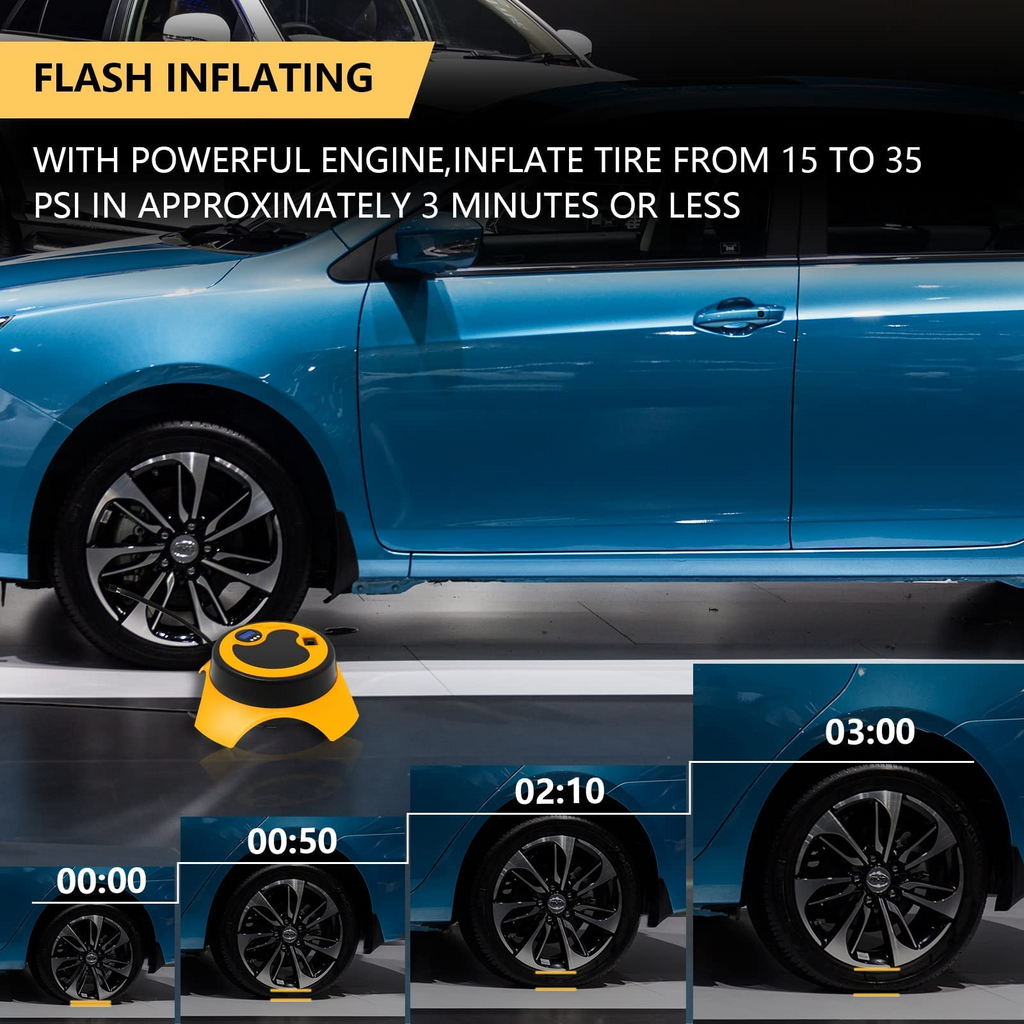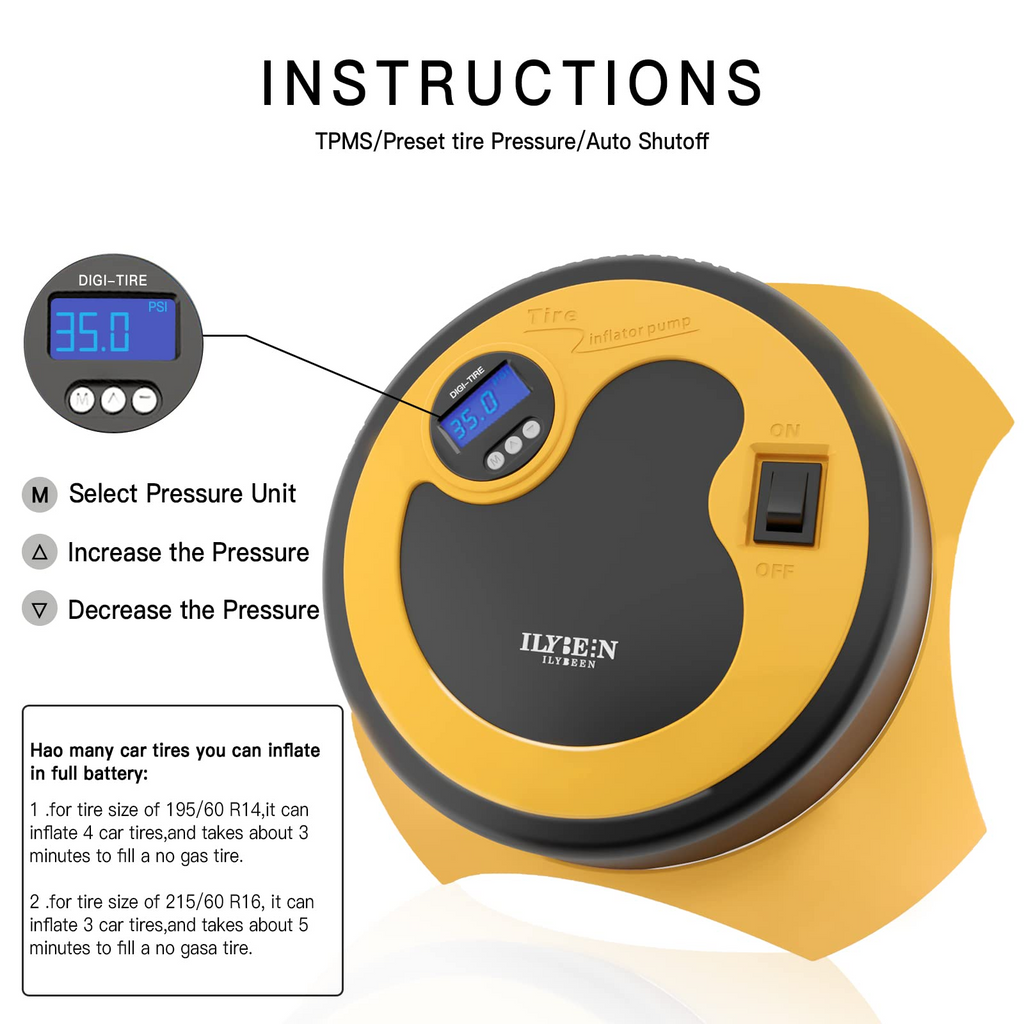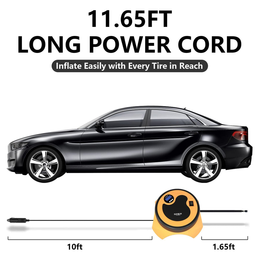 ILYBEEN Tire Inflator Portable Air Compressor, DC 12V Auto Tire Pump, Digital Air Pump with LED Light for Car Tires Bicycles Motocycle Basketball, Long Power Cord Auto Shut Off(Black/Orange)