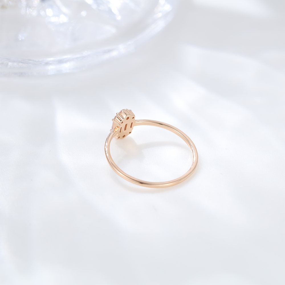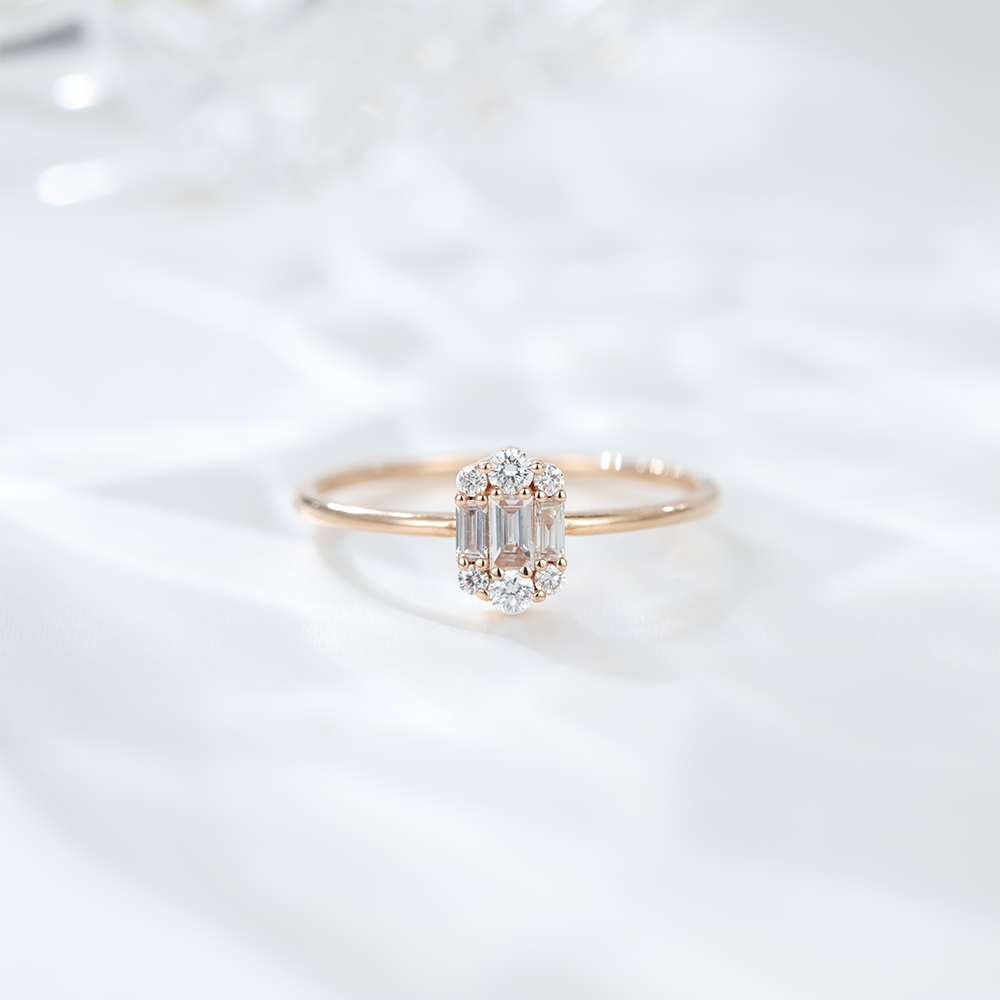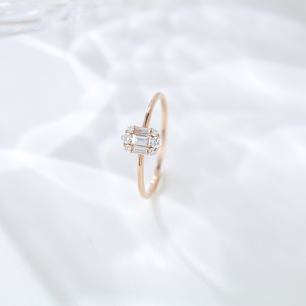 Unique badguette engagement ring Silver 925 Rose gold Moissanite Engagement Ring, art deco Cluster engagement ring for her